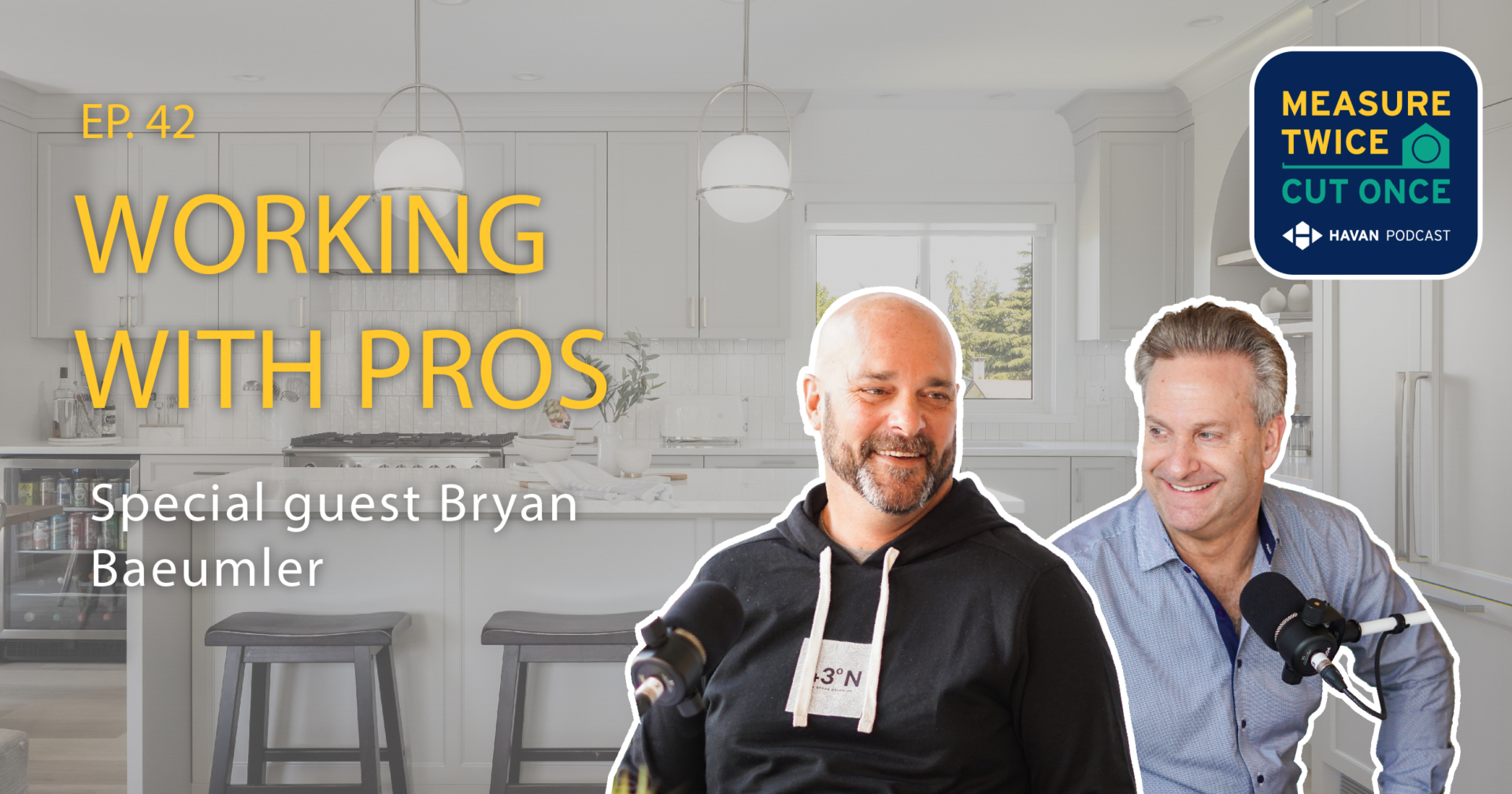 | We’ve been keeping this secret for a month and we’re thrilled to finally share the news! Join us in listening to the newest episode of HAVAN’s podcast featuring Graeme Huguet and the one and only Bryan Baeumler. This episode of Measure Twice Cut Once delves into the value of working with a professional. This episode was recorded during the busy BC Home + Garden Show weekend. Bryan had a packed schedule but was gracious enough to make this happen. Bryan, thank you for taking the time, HAVAN as well as the My House Team could not appreciate it more! Scroll down to listen or watch the interview. |