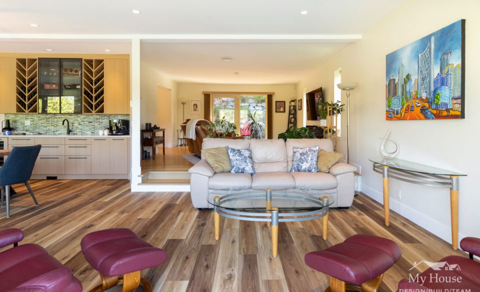 This project, located in Belcarra, focuses on improving the homeowners’ lives by transforming their house with accessibility in mind. The old design of the house and the layout were not functional, and the homeowners wanted to be able to age in place comfortably. There were also mobility issues with a chair lift and multiple level changes in the house.