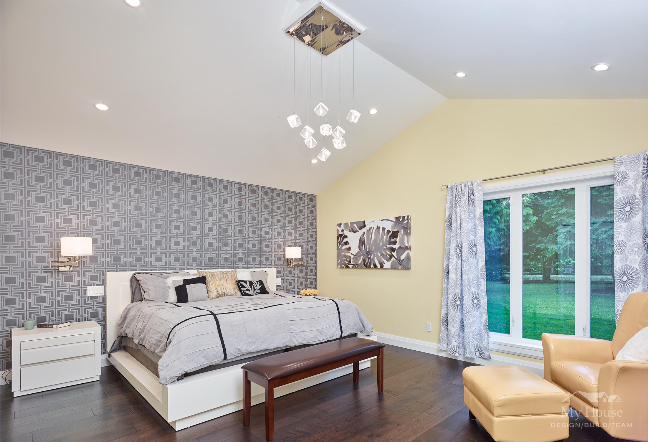 The second major objective was to give the kids amazing spaces of their own. First thing was first – we created loft spaces for each of them. The daughter’s room already have a vaulted ceiling, which we took total advantage of, but the son’s room ceiling was originally flat. To keep things fair, we reframed the ceiling over the son’s room so that he could also have a loft space. Designing the children’s rooms was one of the most fun aspects of this job. After harrowing interviews with the 6-year olds’, complete with harsh lighting and a definite “bad cop”, we plucked from their brains all the elements they love and desire.