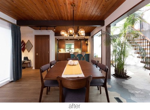 Right from the beginning it was evident that this Coquitlam Renovation was unique. It’s first impression was memorable as immediately after entering the front door, just past the dining table, there was a tree growing in the middle of home! Upon further inspection of the space it became apparent that this home had undergone several alterations during its lifetime. Especially in the atrium, there was exterior siding, stucco, dirt floor, exterior light fixtures, and openings. Clearly the previous owners had added a roof over an exterior courtyard to capture the space for interior use. Removing the dirt floors and spider webs was a very high priority for these clients.
