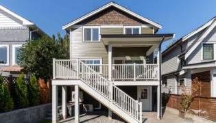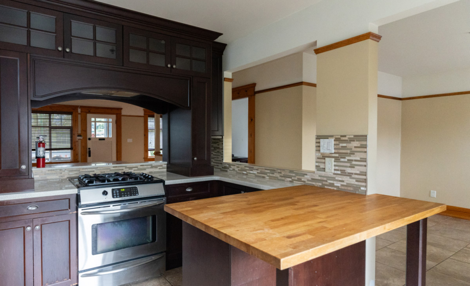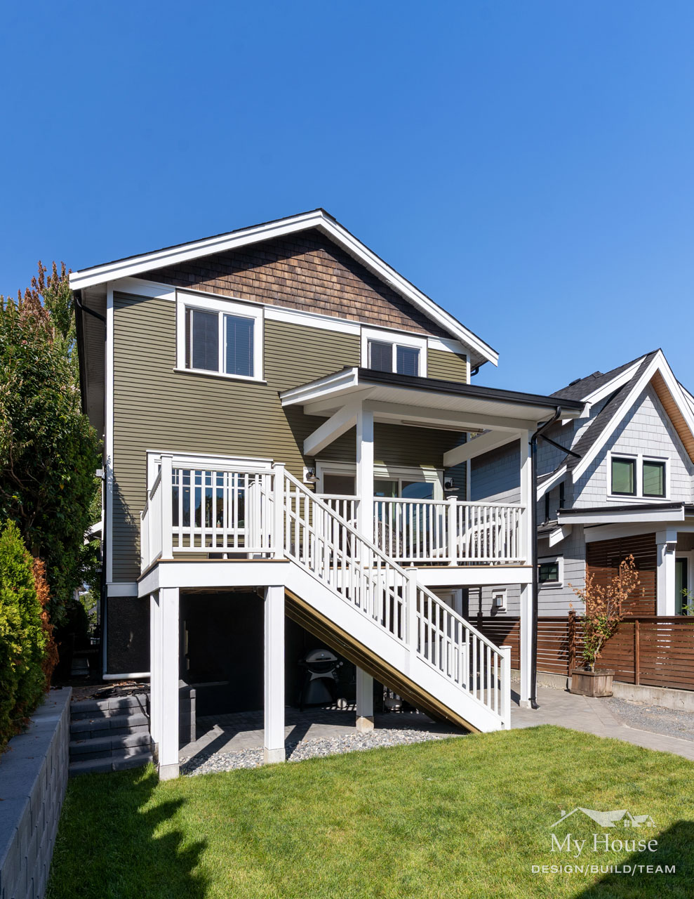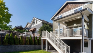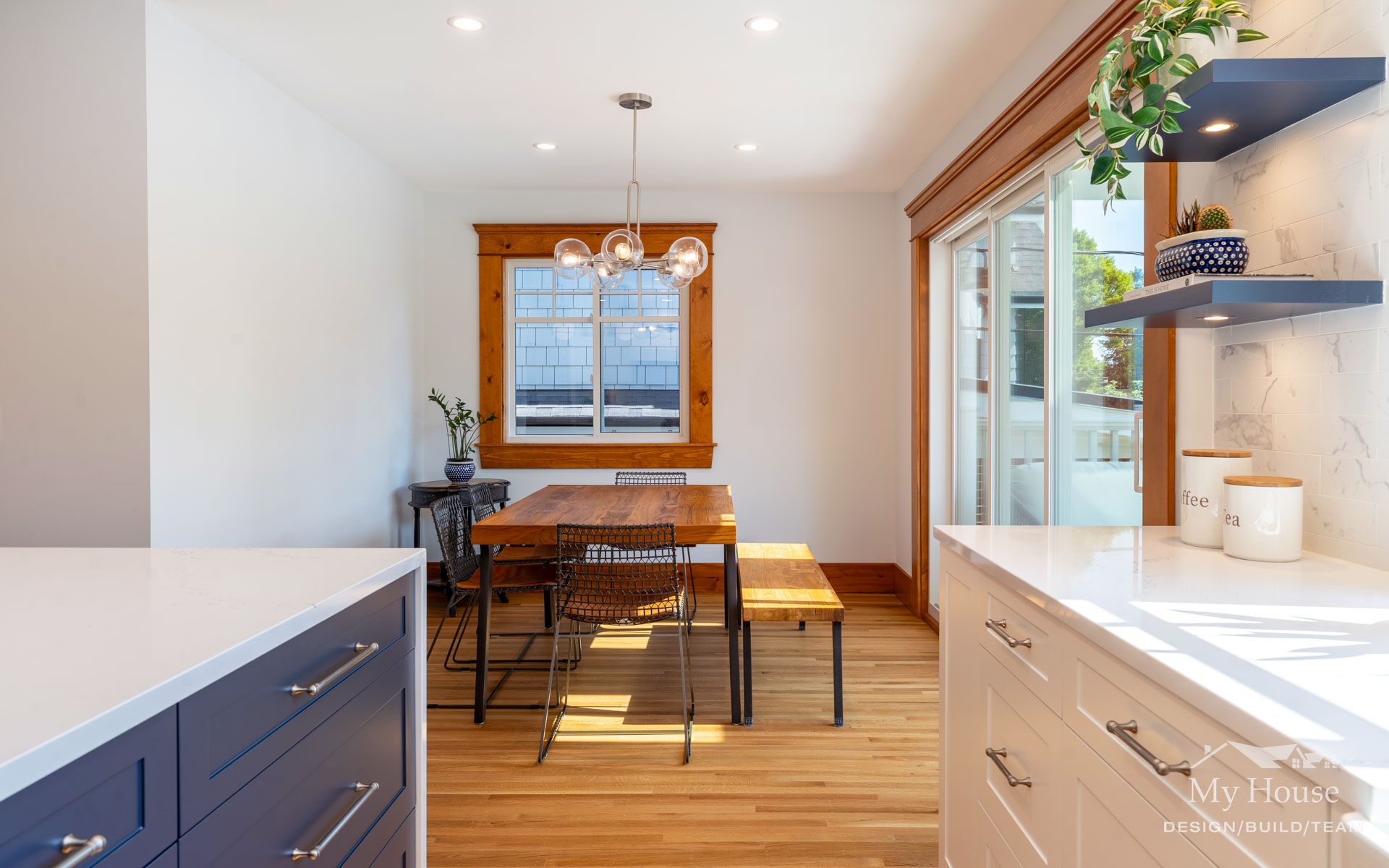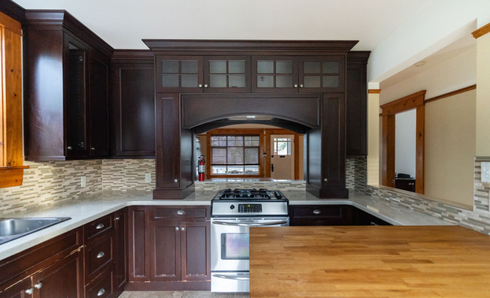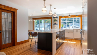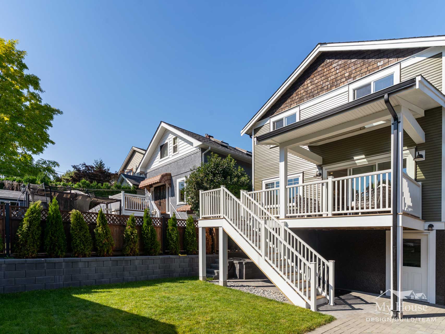 This Vancouver character home underwent a main floor transformation to improve flow and modern functionality while respecting its original charm. The enclosed kitchen was opened up with a large L-shaped layout and central island with seating, perfect for family living and entertaining. The main floor bathroom received a cosmetic refresh, and the yard was re-landscaped to connect seamlessly with a new partially covered deck, creating a safe and enjoyable outdoor space for children.