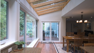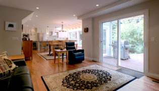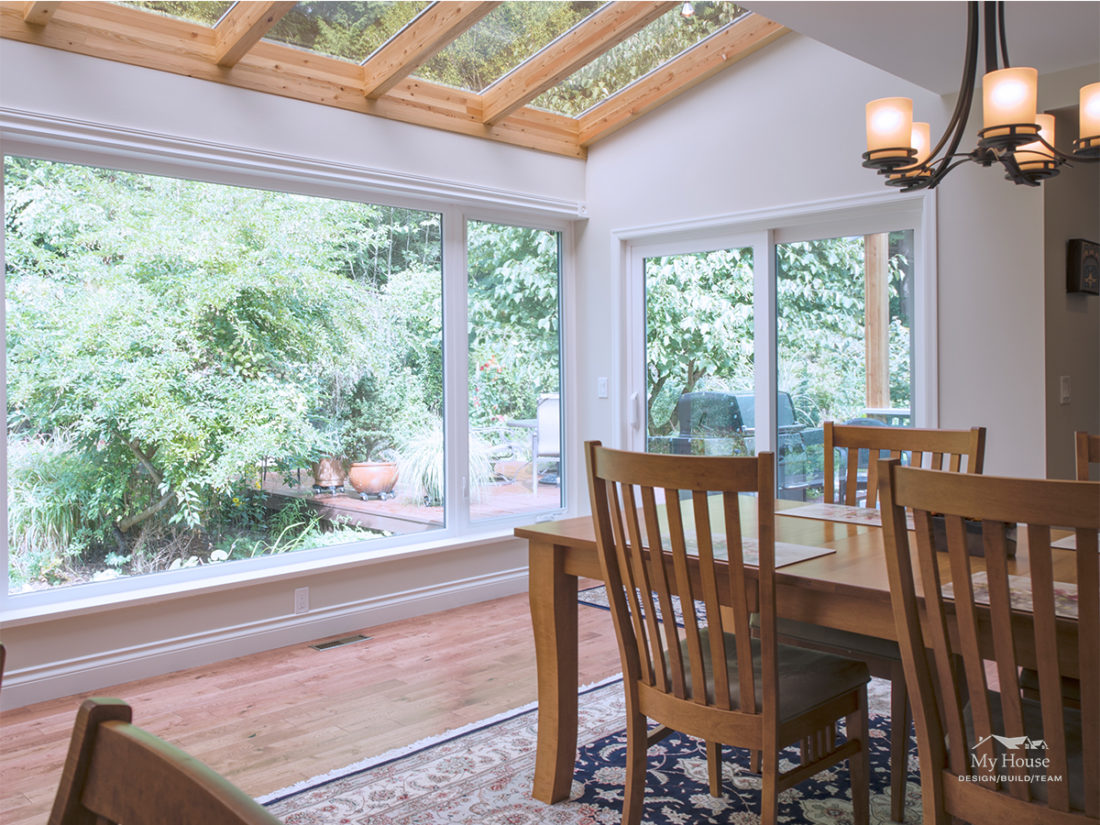 To minimize environmental impact, low VOC paints and stains were used and new energy-efficient appliances were installed. The owners can further reduce their energy consumption as the large floor to ceiling windows and custom skylights flood the kitchen and dining area with natural light (and not to mention a great view of the fully landscaped backyard).