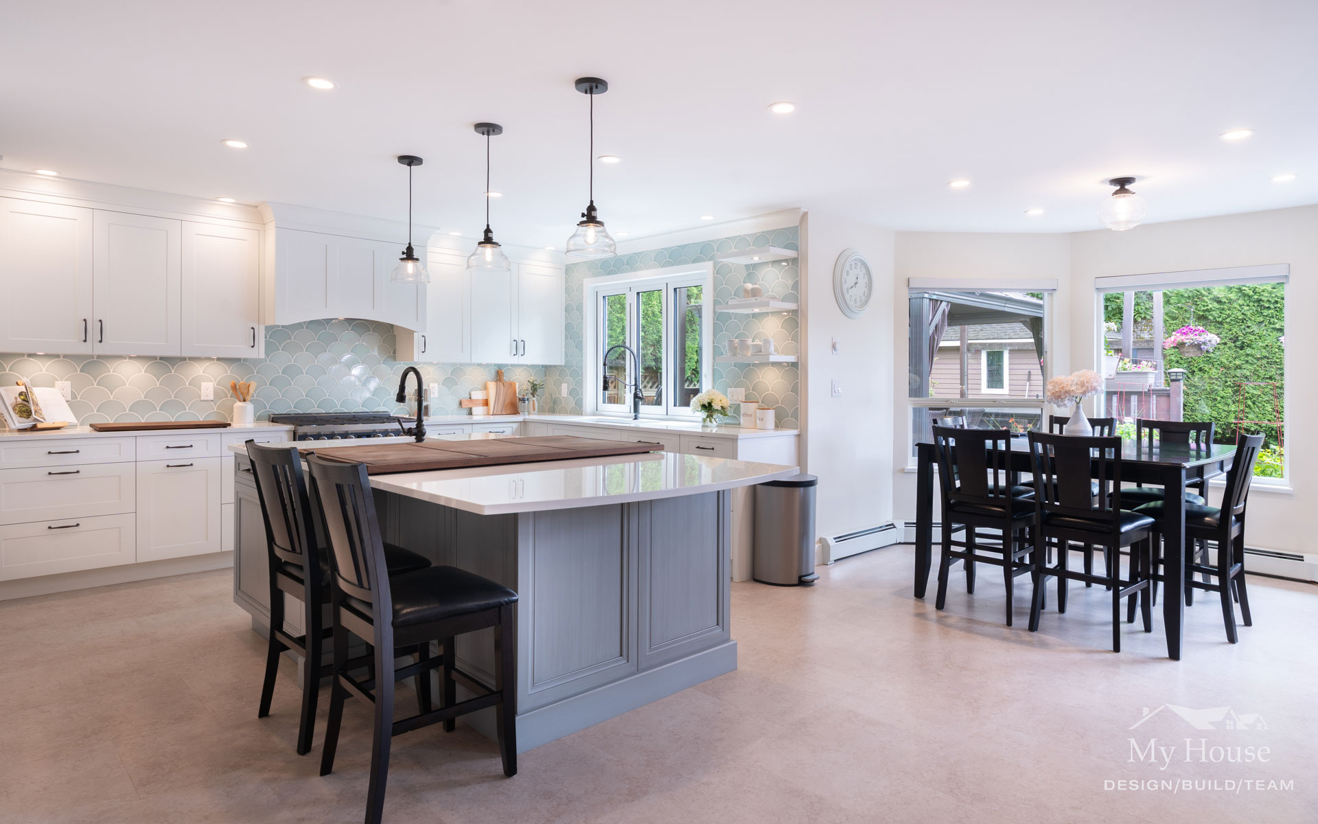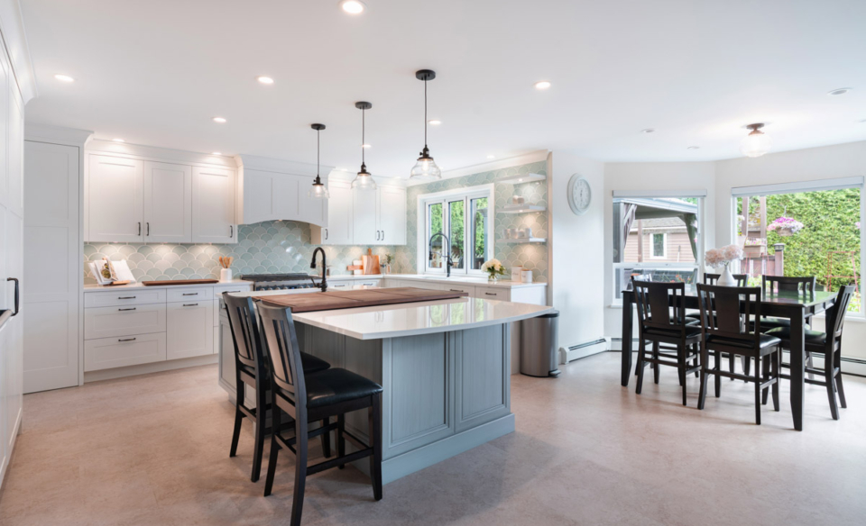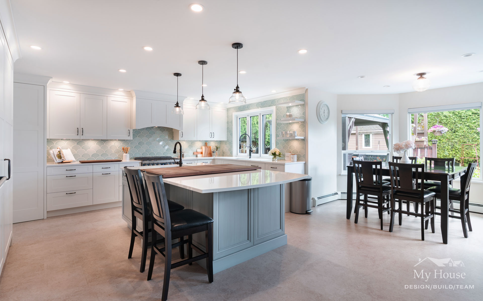 The result is a fresh, modern kitchen that blends function, style, and personality—perfect for family living and entertaining.