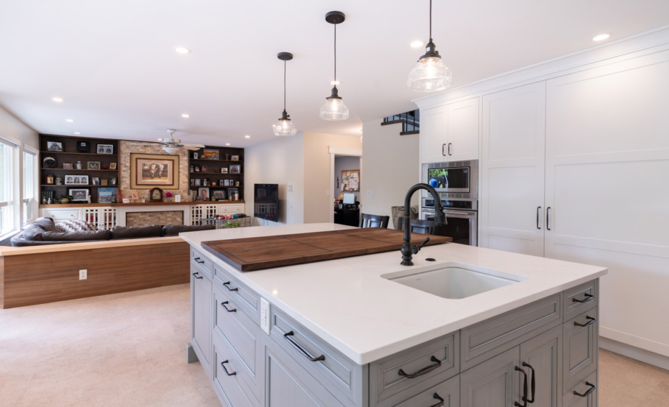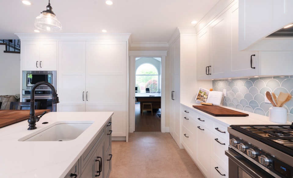 This family’s kitchen was dated, worn, and disjointed, with a non-functional double island and limited storage. Our goal was to create a bright, cohesive, and highly functional space tailored to their lifestyle.