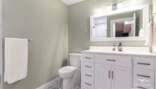 The design focused on cost-effective, durable materials while still including key upgrades, such as quartz countertops in the kitchen for a modern, clean finish. A high-end Enviroshake roof was also installed, providing long-lasting protection and curb appeal