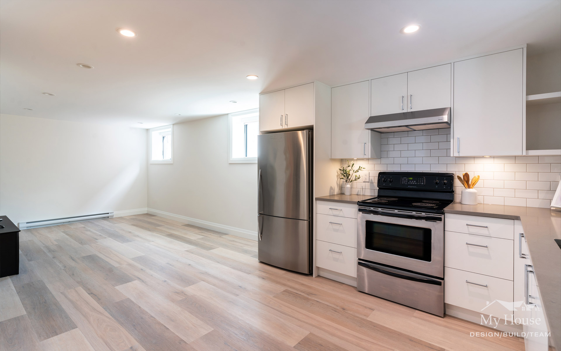 The lower level has been transformed into a stunning one-bedroom basement suite with