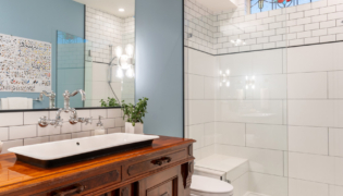 The bathroom was beautifully renovated with a perfect balance of modern style and heritage charm. We preserved the stunning stained glass window, maintaining the home’s historical character. A touch of boldness was added with graphic floor tiles, while a vintage vanity and antique fixtures kept the classic feel intact.