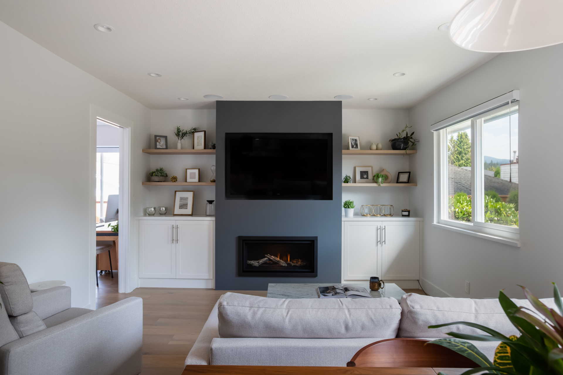 The living room received a fresh update, creating a clean and inviting space that complements the home’s overall aesthetic. Meanwhile, the office was redesigned to be bright and organized, with plenty of storage and functional workspaces to maximize productivity.