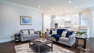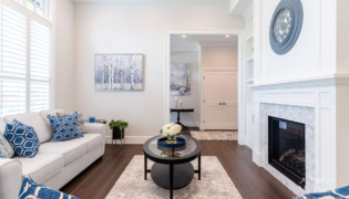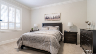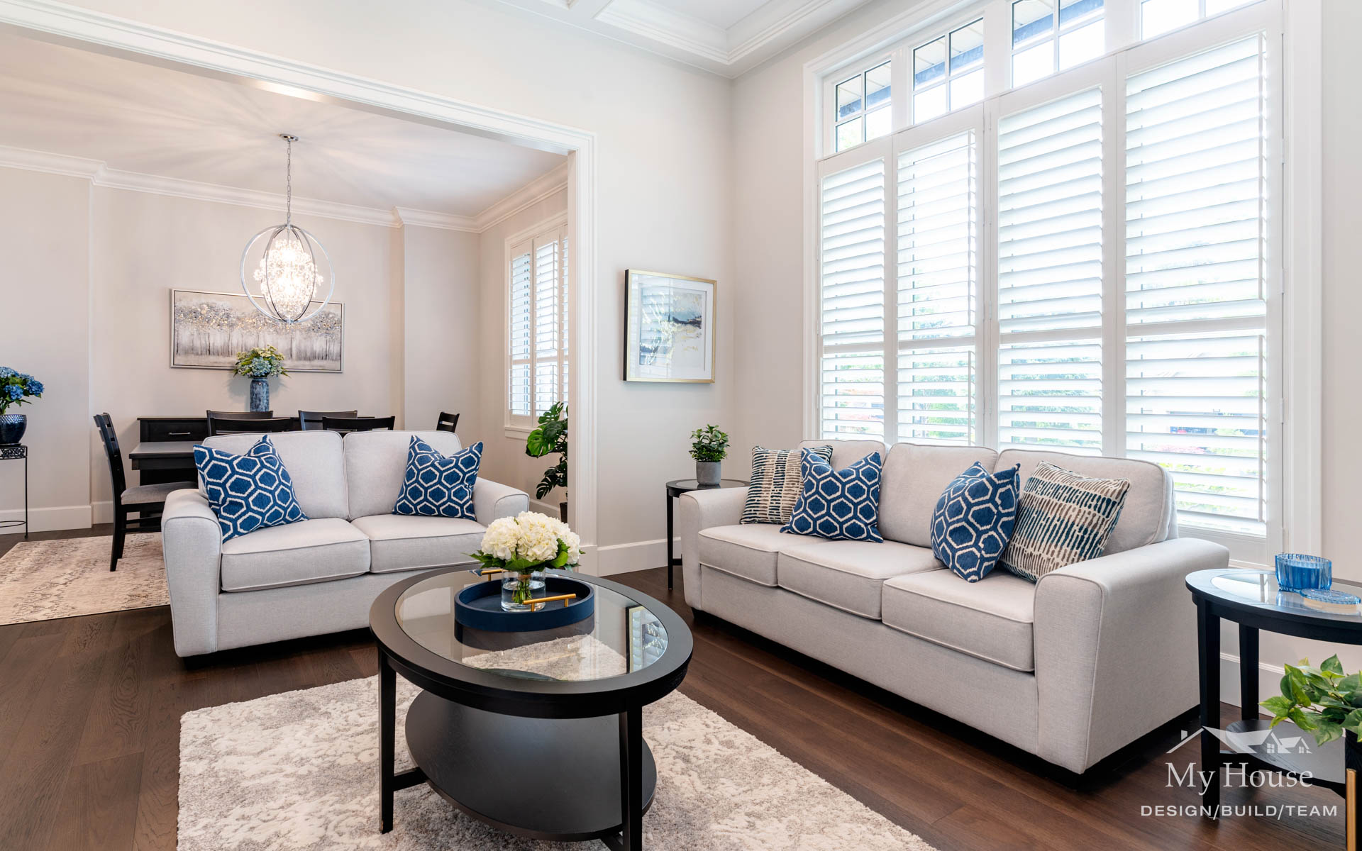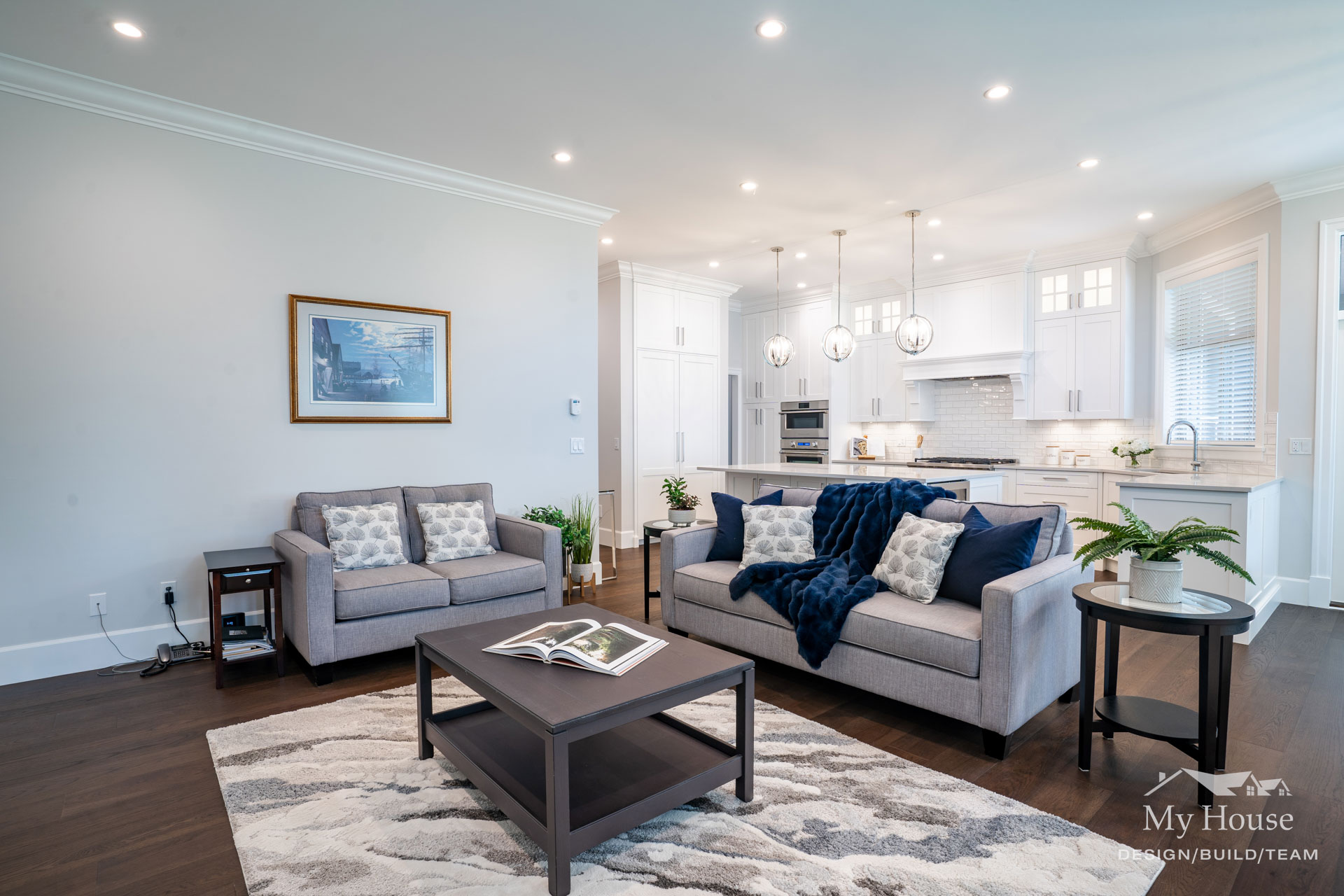 Rich, brown hardwood flooring was chosen to run throughout the home, providing a continuous flow and cohesive feel from room to room. The flooring adds warmth and elegance, making the space feel inviting and connected.