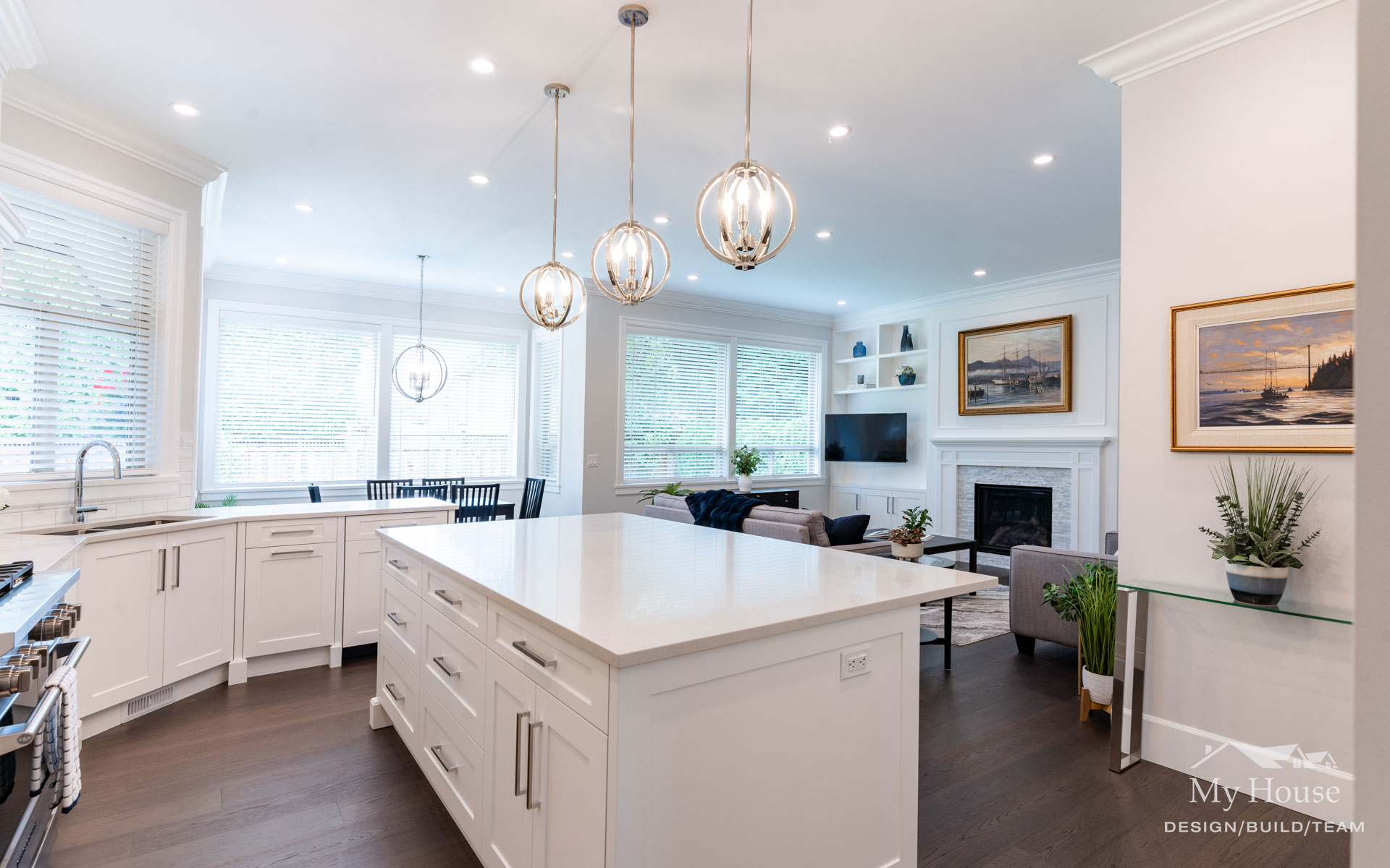 The kitchen was completely revitalized, with a focus on improving both the flow and functionality of the space. The island was repositioned to optimize the layout, and a sleek wine fridge was incorporated for added convenience.