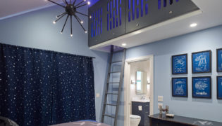 The original two-bedroom home wasn’t nearly large enough for our clients and their 7-year old twins. The home’s reconfigured floor plan aimed to address this need. Now, each child has their own bedroom – one Star Wars themed and the other Garden Party, each with their own loft as well as ensuite bathroom.