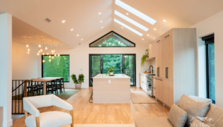 Upstairs, the young family enjoys a spacious 3-bedroom layout with an open-concept kitchen, dining, and living space. The kitchen was repositioned to face the rear yard, maximizing natural light and creating a strong connection to the outdoors. A vaulted ceiling and skylights further enhance the home’s sense of openness, while a covered deck off the kitchen allows for year-round outdoor enjoyment.