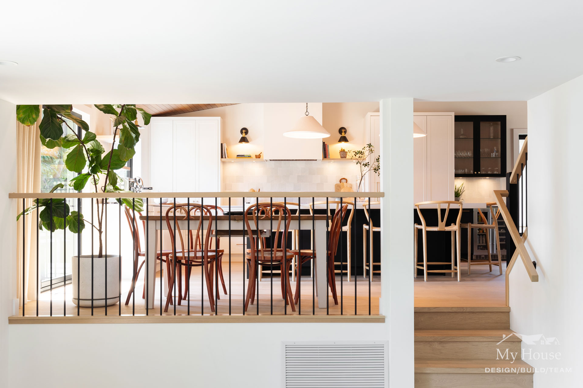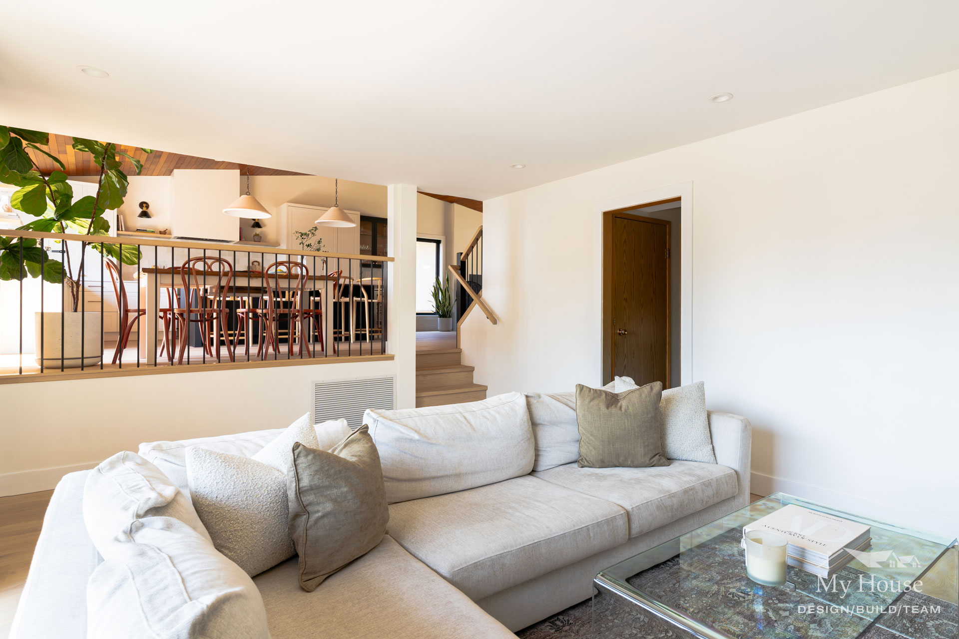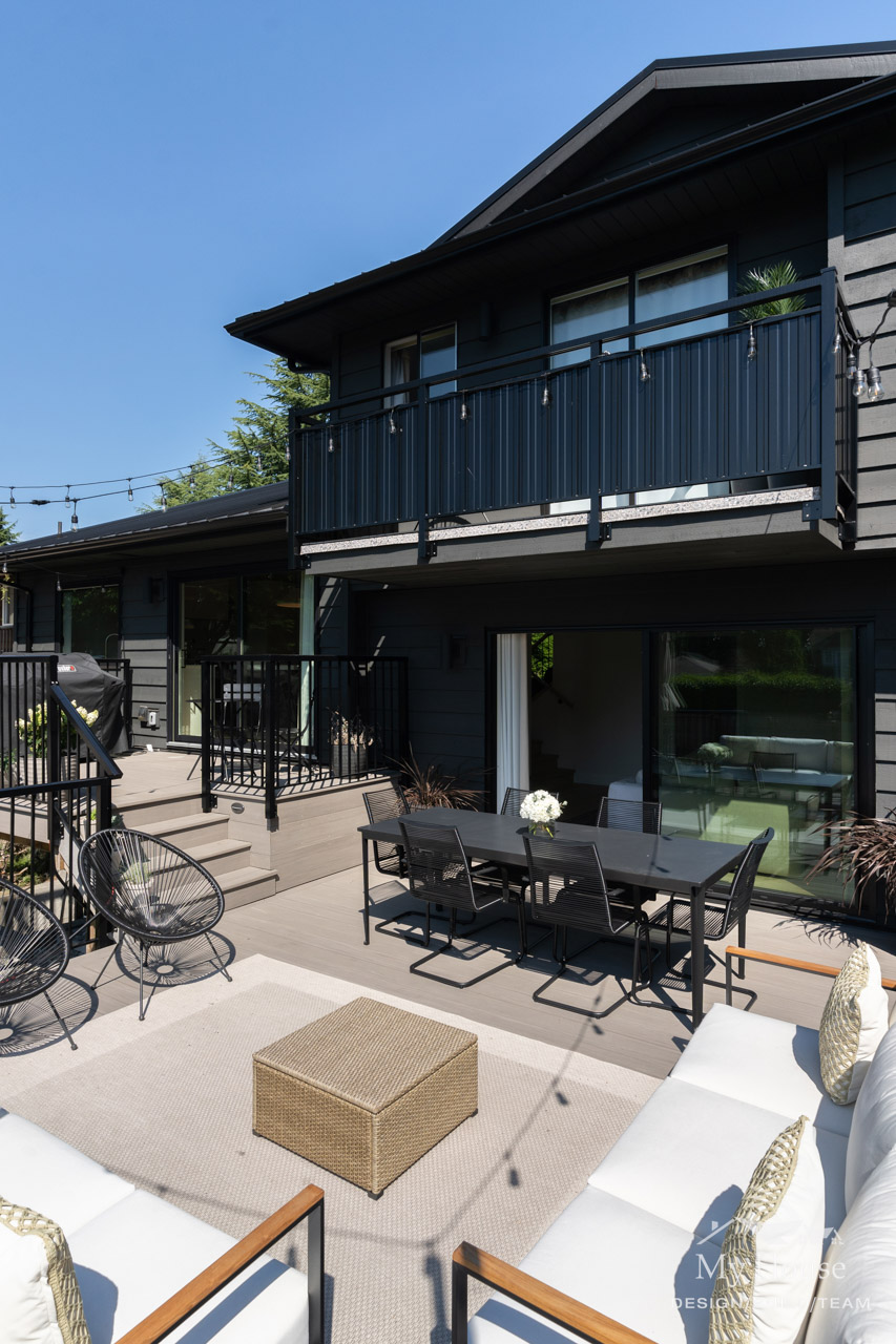 Step outside, and you’ll find a deck that mirrors the sophistication of the interior. It’s been redesigned to match the split-level layout indoors, offering seamless indoor-outdoor living. We’ve selected composite decking for its aesthetic appeal and easy maintenance, ensuring a beautiful and long-lasting outdoor space.