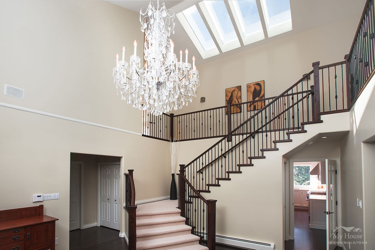 This home had many great features, but home owners wanted some updates, a brighter feel througout, a larger Master Ensuite that could incorporate the home’s view of the water, and more space for their daughter on the 2nd floor.