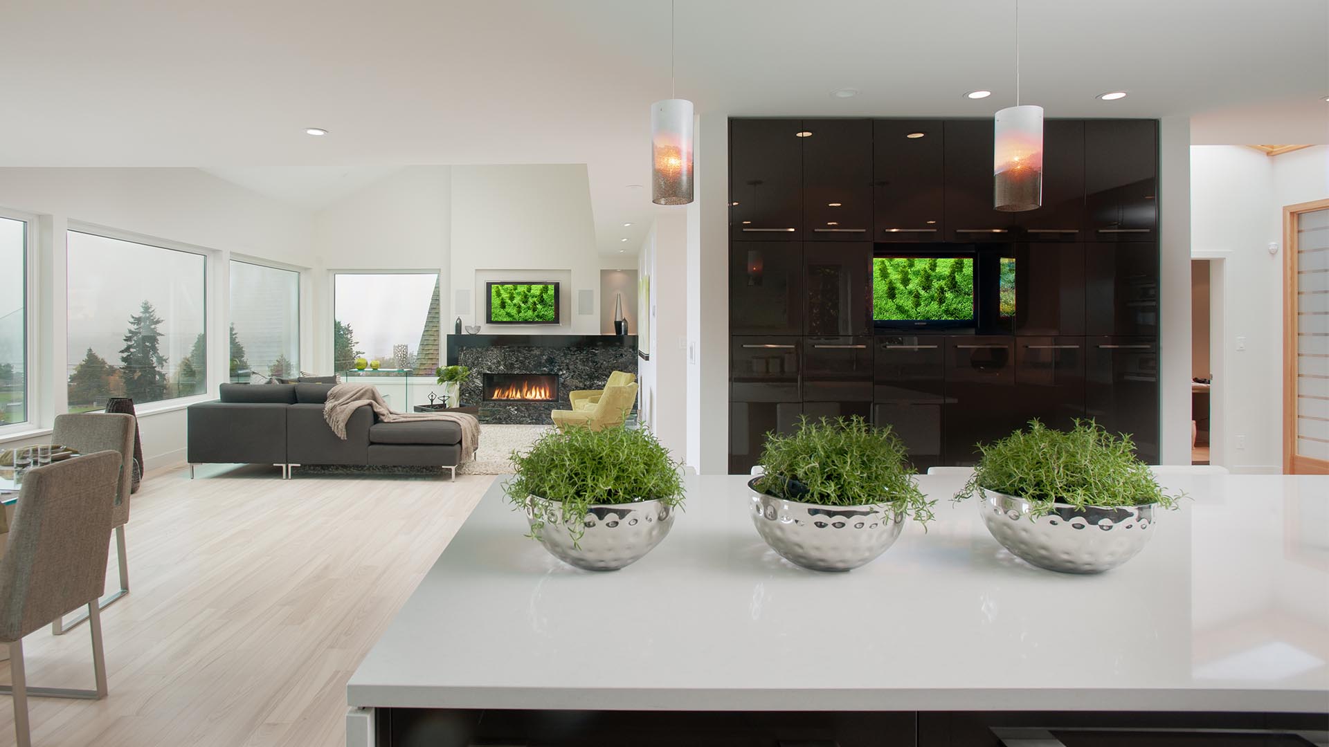 The existing layout of the home didn’t take full advantage of the stunning view. By reconfiguring the main floor we optimized the floor plan to take in the home’s surroundings. We reoriented the kitchen and opened it up to the great room as well as the foyer.