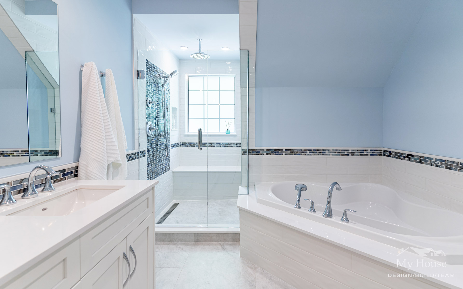 Follow this home through its amazing transformation. Because of the large scale changes our camera angles may shift from before to after.