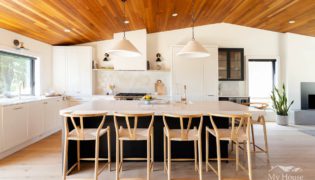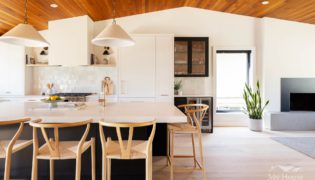 In the heart of the home, we focused on simplicity. Minimal wall cabinets give the kitchen an open and airy feel, allowing it to breathe. The real star of the show is the expansive island, which not only serves as a culinary hub but also provides seating for up to six guests, turning every meal into a social event. Pendant lights above the island add a touch of artistry, complementing the sleek countertops below and showcasing the thoughtfulness put into every design choice.